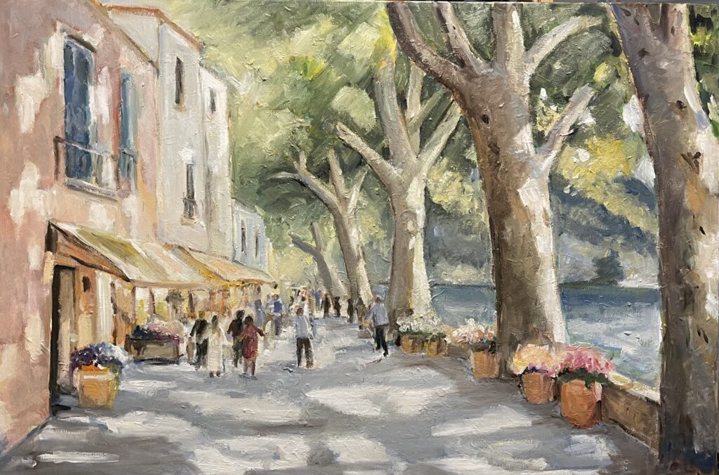 Gaden med træet og bordet – “Her gik tiden i skyggen. Nu hænger roen på en ny væg – og landsbyen lever videre i et andet hjem”
